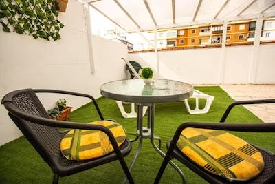 Located next to the stairs, this room is oriented to the interior. It has a TV and a private bathroom with hairdryer.